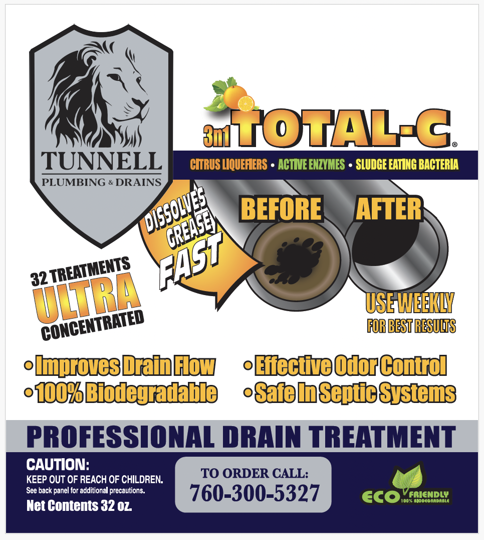 To provide the most effective solutions, we utilize Total-C drain treatment products as part of our service offering. Total-C is a powerful, eco-friendly, and safe treatment designed to keep drains free from buildup, grease, and odors. It uses a combination of natural citrus-based degreasers and powerful surfactants to break down organic waste, ensuring your drains remain clear and your plumbing system functions efficiently.